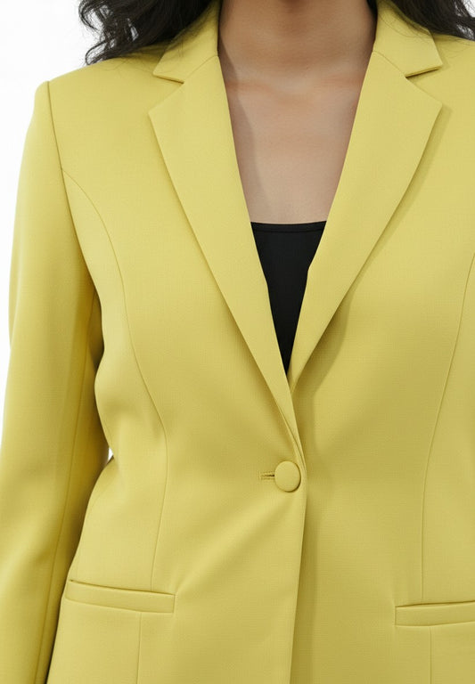 Women Notch collar Blazer Pant suit Set (Lime Yellow)